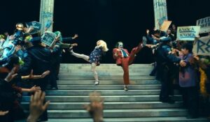Parece que Todd Phillips se escondeu atrás de Gaga e Phoenix, colocando-os para cantar sem justificar a quase incessante presença de músicas. Sabemos que, assim como no primeiro filme, muito do que acontece vem da imaginação louca e questionável de Arthur Fleck. Contudo, pautar tudo isso num musical constante parece uma saída covarde.