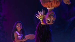 Também chama atenção na jornada de Moana o encontro com Matangi. A nova personagem tem um desenvolvimento um pouco falho, e o desfecho de seu arco não se concretiza como prometido – o que deve acontecer apenas em “Moana 3”.