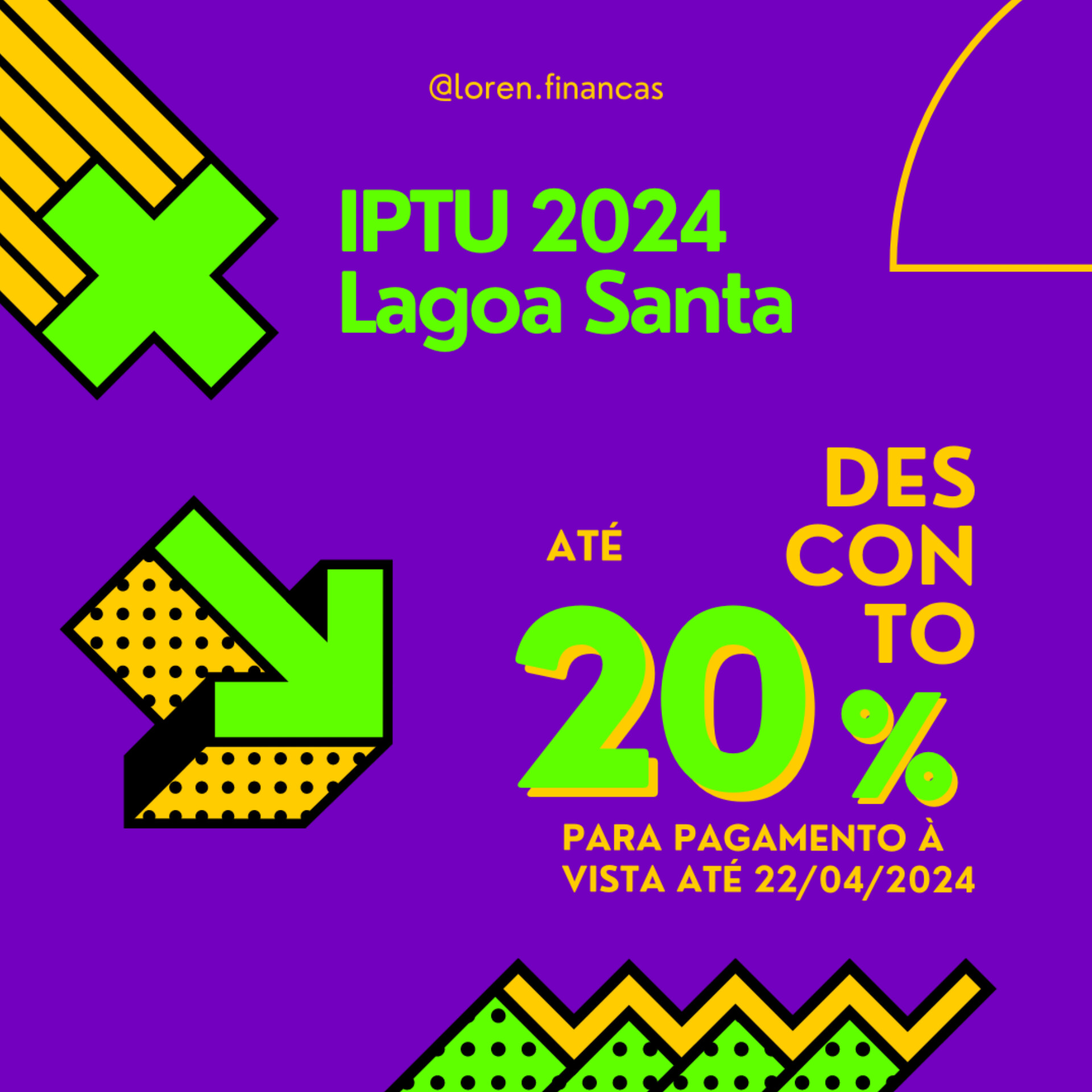 - Aqui em Lagoa Santa, a 1ª parcela do IPTU 2024 vencerá em 22/04/2024.