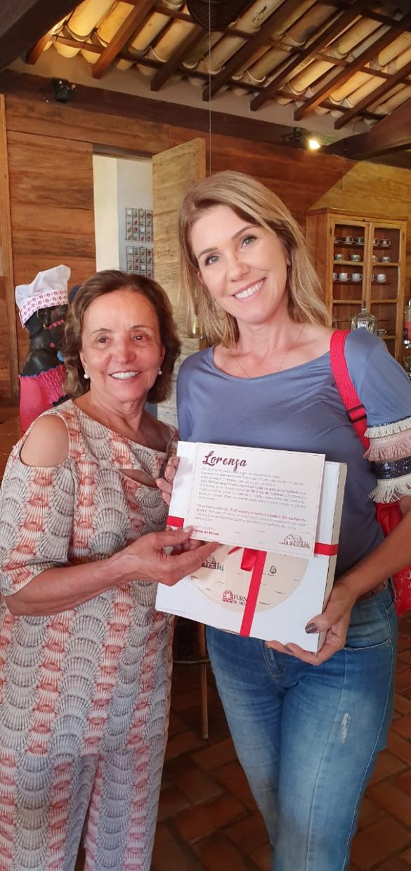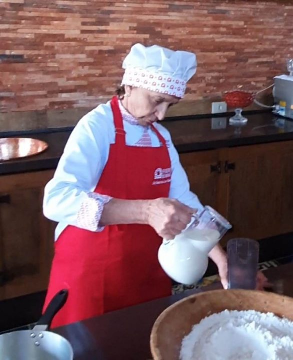 No segundo dia desembarquei em Sete Lagoas para conhecer a fazenda da Dona Dalva. Lá, fui recepcionada carinhosamente pela D. Dalva e sua filha Hélida que logo nos presentearam com um lindo avental personalizado para que eu pudesse colocar a “mão na massa” e preparar o famoso pão de queijo mineiro.