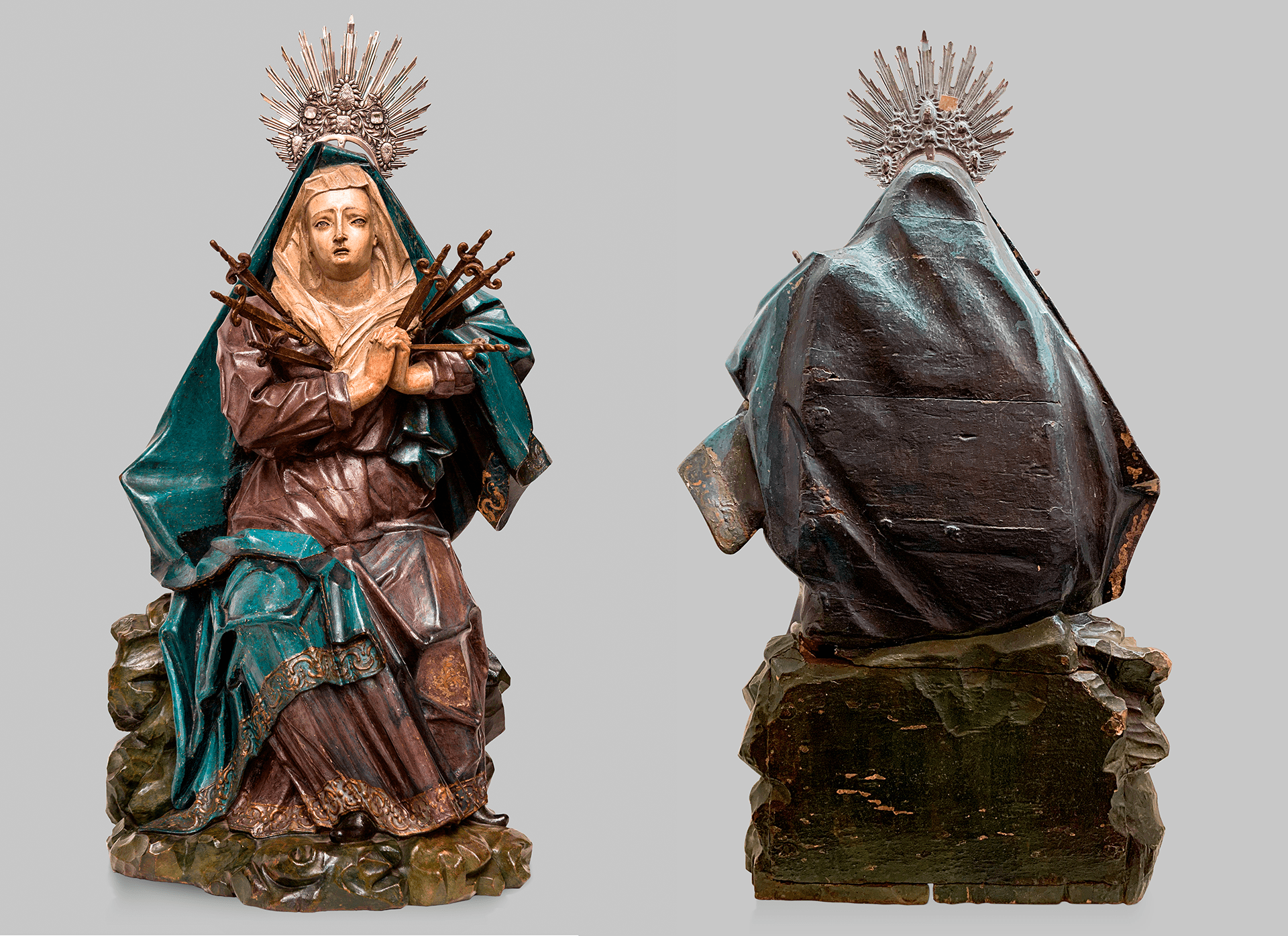 Este recurso tecnológico permitirá que o visitante veja as obras de maneira muito diferente, enxergando detalhes que passavam desapercebidos. Uma das peças que está nessa exposição e merece um olhar mais atento é a imagem de Nossa Senhora das Dores, de autoria do mestre Antônio Francisco Lisboa, mais conhecido como Aleijadinho, que foi uma das primeiras peças adquiridas pelo Governo do Estado para endossar os tesouros do acervo. Os traços angulosos do planejamento das vestes e o formato das sobrancelhas, olhos, boca e nariz foram indicados pelos técnicos do Instituto do Patrimônio Histórico e Artístico Nacional como estilemas de Aleijadinho, figura que foi amplamente estudada e disseminada pelos modernistas como um personagem mítico no intuito de construir a história da arte brasileira. Filho de mãe negra escravizada, sabemos que teve um protagonismo na produção colonial mineira onde atuou como escultor, entalhador, arquiteto e carpinteiro. A peça é tombada individualmente pelo IPHAN.