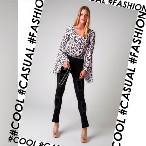 nimal print estilizado, tanto no blazer quanto na blusa de manga flare está cada vez mais atual e em composições belíssimas. Essa é uma opção que você pode apostar e sem dúvida deixará sua marca. Confere muito estilo e leveza ao look.