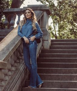 Por último, não poderia deixar de falar do jeans. Peça básica que continua forte no dia a dia de toda mulher que precisa de praticidade e elegância! Seja a calça clochard, skining ou flare, você pode estar toda de jeans ou colocá-lo com uma camisa branca, é certeza de conforto e estilo. É uma das peças mais democráticas do guarda roupa, ele vai com tudo: peças lisas, estampadas ou até mesmo um look todo jeans, fica lindo e é bem coordenado.